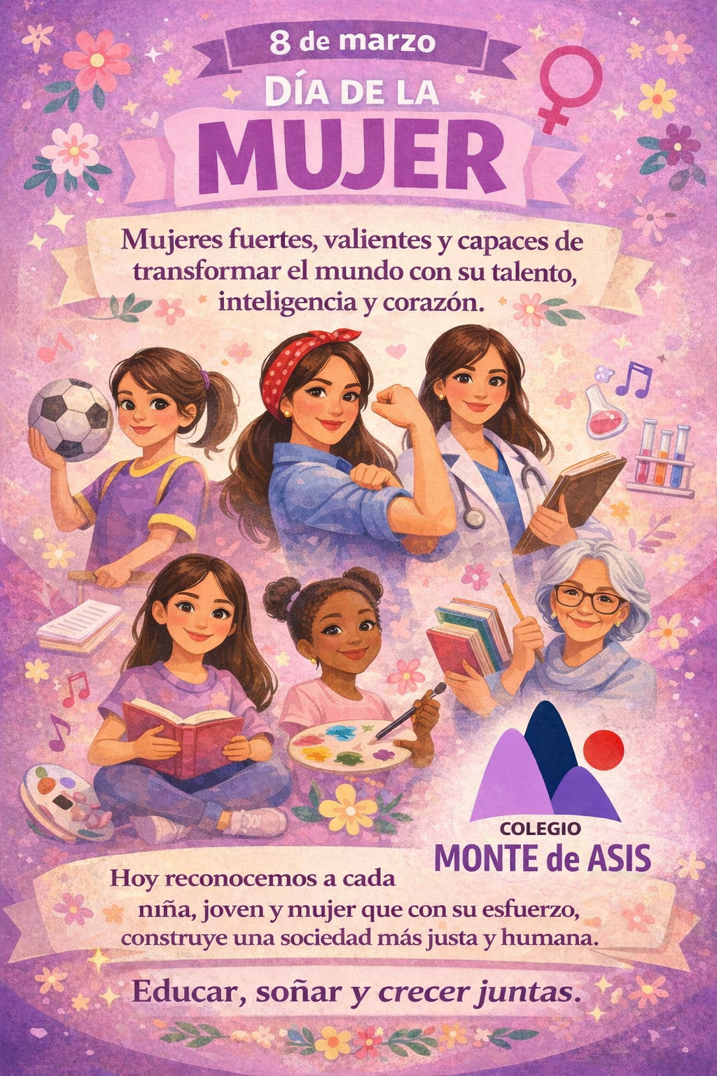 En el marco del 8 de marzo, Día de la Mujer, nuestra comunidad educativa reconoce y valora el aporte de cada niña, joven y mujer que forma parte de Monte de Asís.
